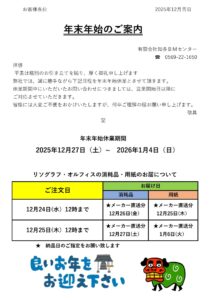年末年始休業日のご案内